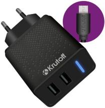 СЗУ Krutoff CH-07M 2xUSB + дата-кабель microUSB 2.4A Black